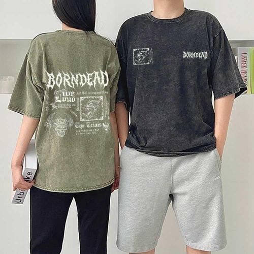 스톤워싱 해골 프린팅 반팔 티셔츠 빈티지 오버핏 WFJFYNR