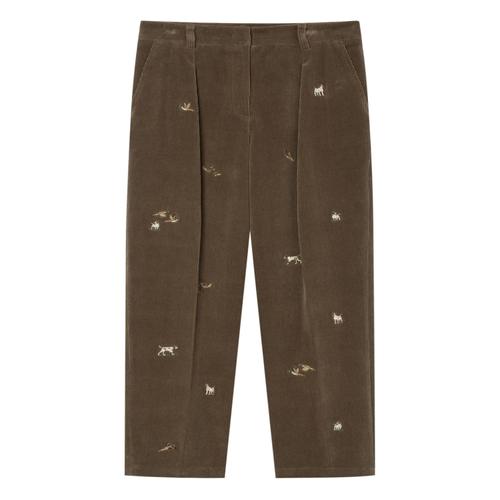 헤지스 여성 올오버자수 테이퍼드핏 코듀로이 팬츠 베이지 (HSPA5D907I2)