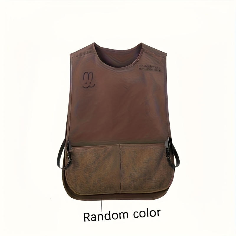TEMU 고품질 & 주방 앞치마 - 귀여운 토끼 그래픽 베이지색, 민소매 디자인, 쉬운 세탁 폴리에스터, 요리·베이킹·세척용, 가정 및 레스토랑 사용, 재미있는 주방복, 매끄러운 질감 원단, 스타일리시한 주방복, 내구성 있는 소재, 전문 셰프용