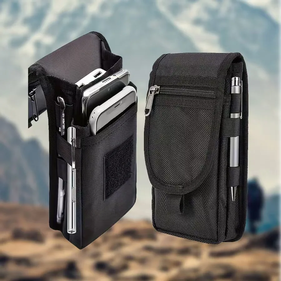 멀티 포켓 유틸리티 파우치 – 지퍼, 카라비너, 벨크로가 포함된 컴팩트한 허리 가방, 휴대폰, 열쇠 및 야외 장비 보관용
