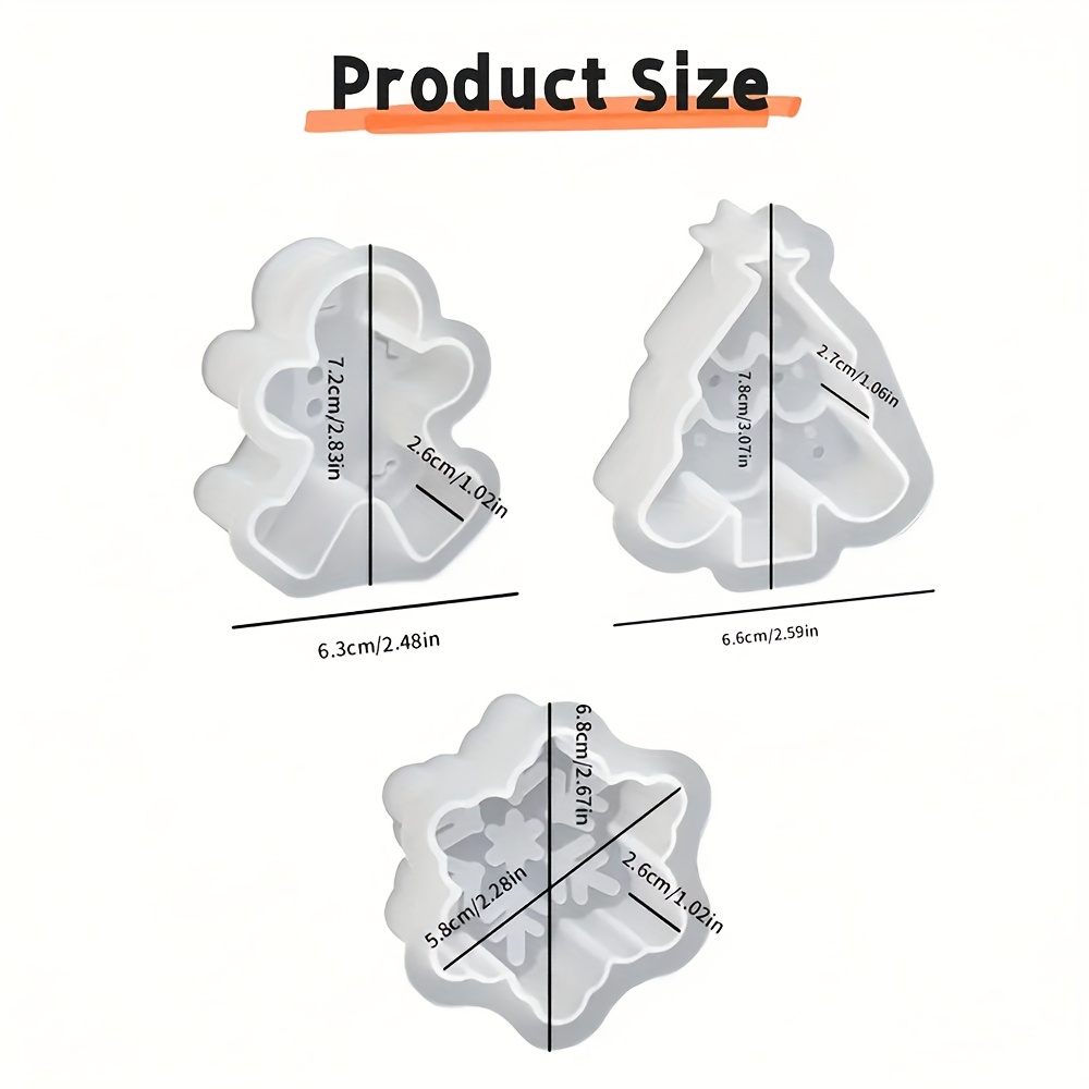 TEMU 3개 세트 미니 사이즈 크리스마스 테마 실리콘 캔들 몰드, 향초 만들기, 독특한 진저브레드 피규어, 크리스마스 트리, 눈송이 모양 디자인 몰드, DIY 레진 공예, 크리스마스 장식, 선물용
