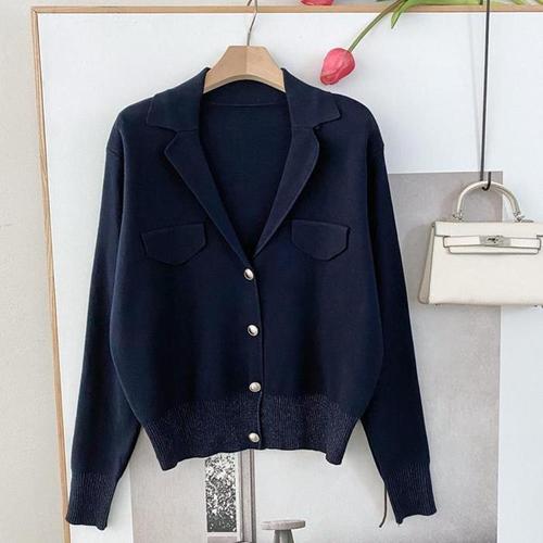 [신상오픈런]카라가디건 봄니트 심플 클래식 여성자켓 투톤 시보리 (31612209)