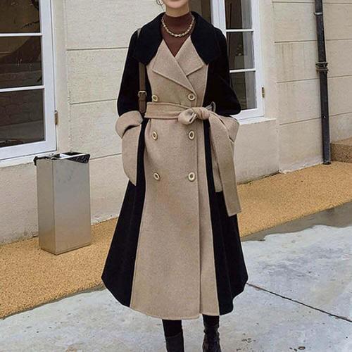 [셀럽하우스]여성 TXEM8841 배색 롱코트 허리 벨트 세트 스타일리쉬