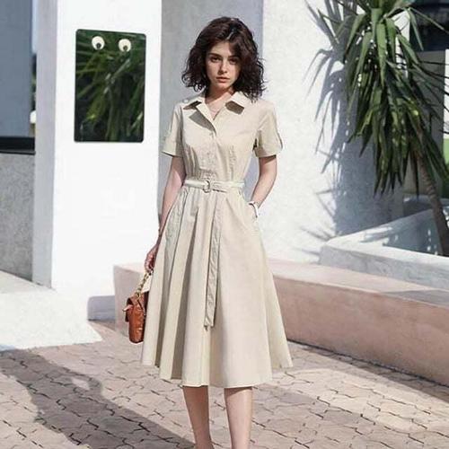 [셀럽하우스]클래식 GVMQ3688 여성 데일리 허리벨트 셔츠원피스 클래식 하객