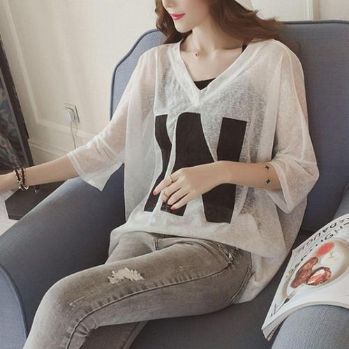 화이트 시스루 셔츠 여성 여름 티 나시 세트 반팔 WFLNVNQ
