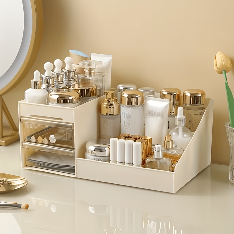 TEMU 대용량 화장품 보관함, 서랍형 탁상용 정리함, 화장대용 및 립스틱 홀더, 및 립스틱용 키높이 병 보관대, 화장대용 방진 정리함