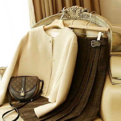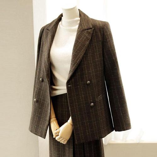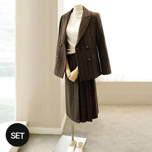 [헤레이스]로페 체크 자켓 스커트 셋업_YMSH25FW141142