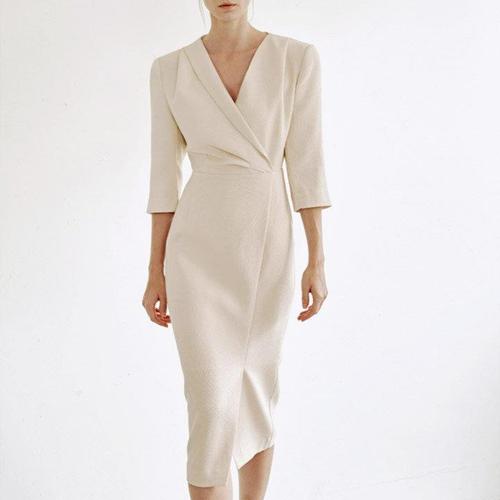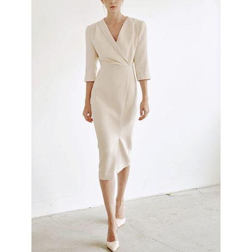 [헤레이스]미디 H라인 브이넥 원피스_YMSH25FW050