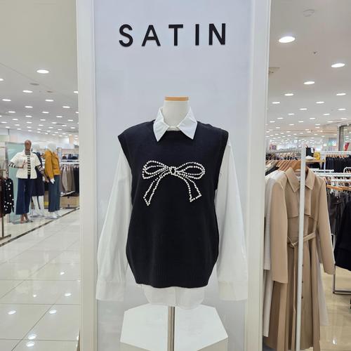 [샤틴]진주리본 니트 베스트 셔츠 세트 S254C902_YS