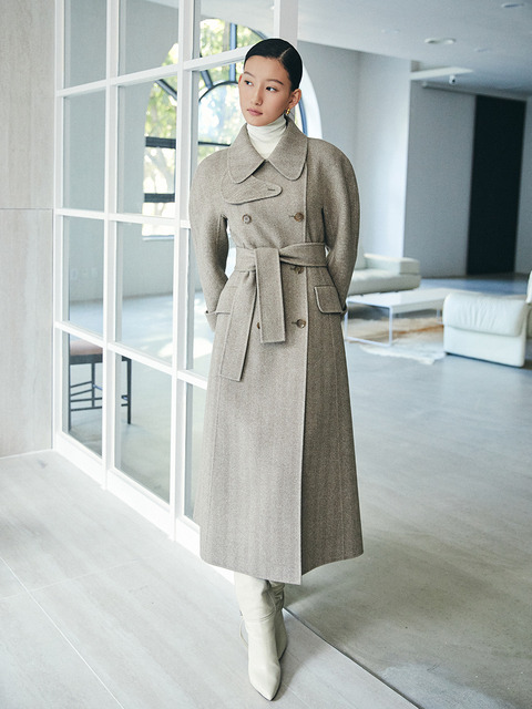미니멈 세이브존03 미니멈 헤링본 더블버튼 핸드메이드 롱 코트 AWMWDCHL0010A