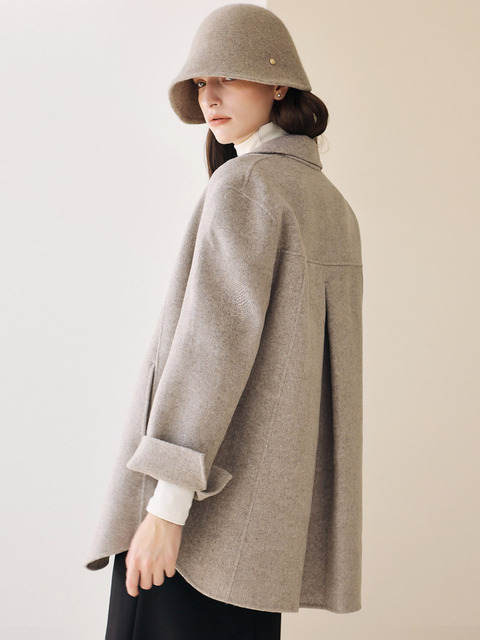 [쥬아르] 울 50% 핸드메이드 헤링본 코트 오버 핀턱 하프자켓_2color