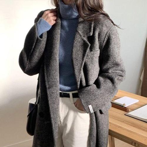 [제이0](퀄리티굿)헤링본 핸드메이드 울 긴팔 코트
