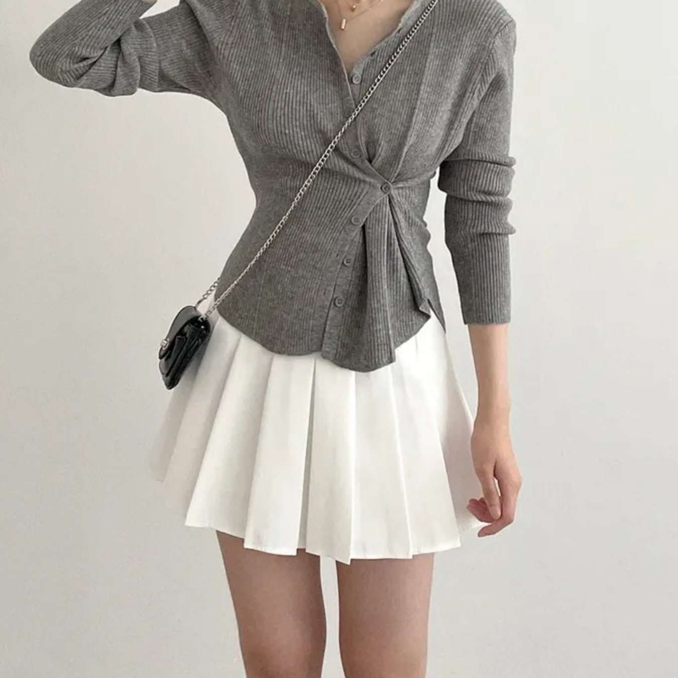 TEMU 한국 스타일 시크 가디건 여성 가을 라운드넥 슬리밍 허리 디자인 대각선 버튼 시크 탑