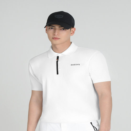 헤지스 골프 화이트 남성 팀스포츠 메쉬조직 반팔 카라 니트 (HUSW5B411OW)
