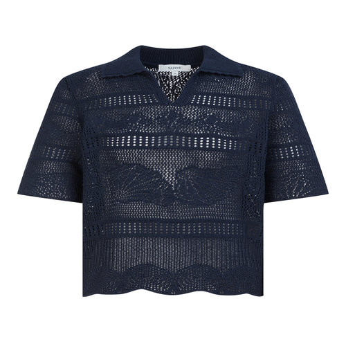 헤지스 여성 네이비 짜임 면혼방 반팔니트 (HSSW6B407N3)