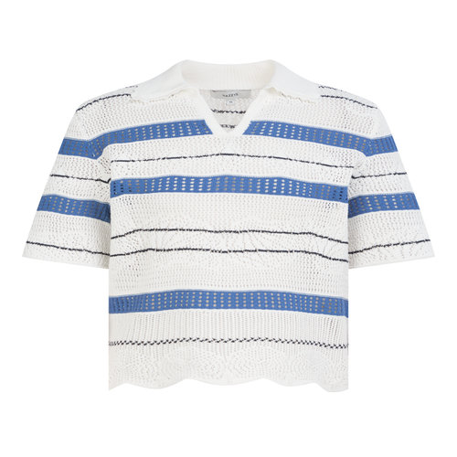 헤지스 골프 여성 화이트 여성 라인배색 반팔 카라 니트 (HWSW5B301OW)