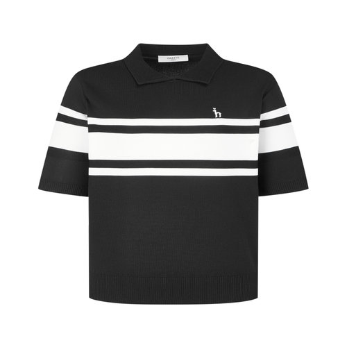 헤지스 골프 여성 [스테디셀러] 블랙 로고자수 반팔카라니트 (WWSW5B921BK)