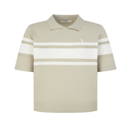 헤지스 골프 여성 브라운 여성 라인배색 반팔 카라 니트 (HWSW5B301W3)