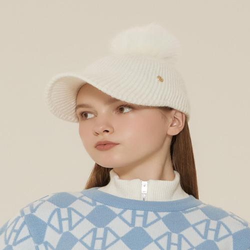 헤지스 골프 여성 화이트 여성 퍼 방울 귀달이 니트 캡 모자 (HWHE4F701OW)