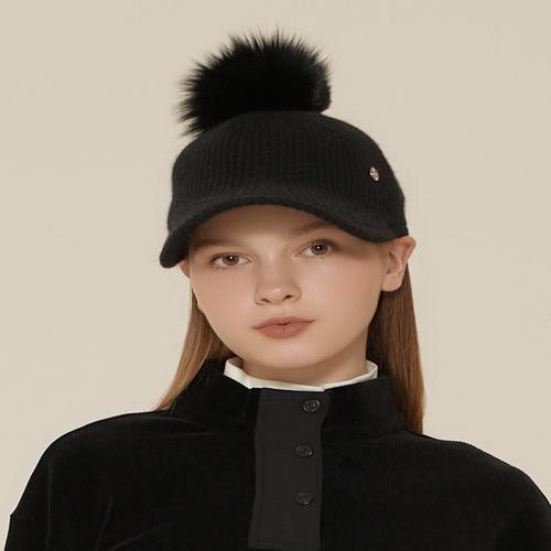 헤지스 골프 여성 블랙 여성 퍼 방울 귀달이 니트 캡 모자 (HWHE4F701BK)