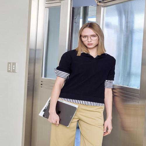 헤지스 여성 [CITY ESSENTIAL] 반소매폴로 니트 풀오버 블랙 (HSSW5BP91BK)