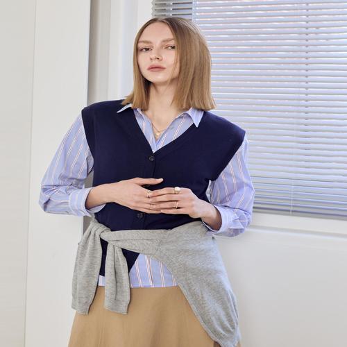 헤지스 여성 투웨이 니트 베스트 네이비 (HSSW5BP92N2)