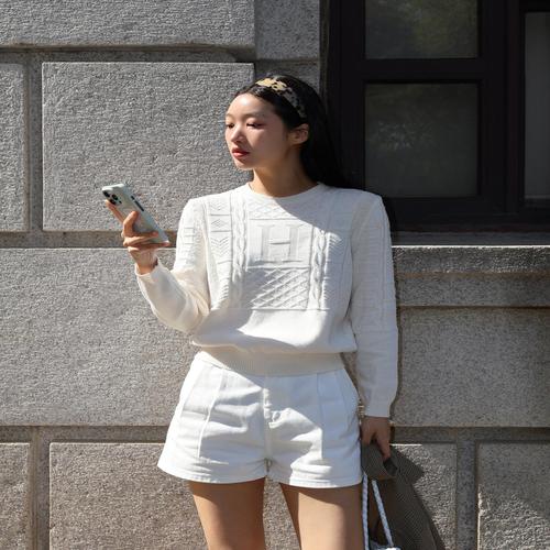 헤지스 여성 부클 면혼방 카라 풀오버 아이보리 (HSSW5B390IV)