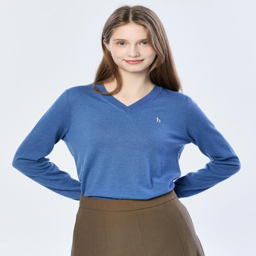 헤지스 여성 브이넥 울혼방 긴팔 풀오버 블루 (HSSW5AC15B2)