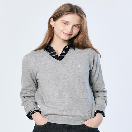 헤지스 여성 브이넥 울혼방 긴팔 풀오버 그레이 (HSSW5AC15G1)