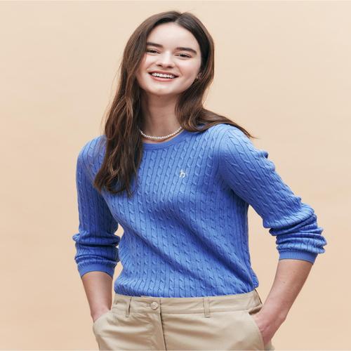 헤지스 여성 면 라운드넥 케이블 긴팔 풀오버 블루 (HSSW5AC17B2)