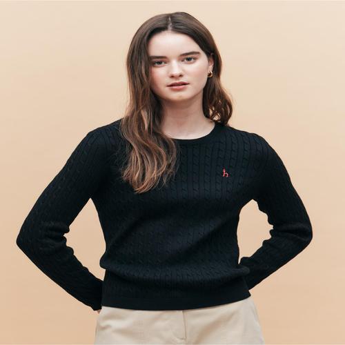 헤지스 여성 면 라운드넥 케이블 긴팔 풀오버 블랙 (HSSW5AC17BK)