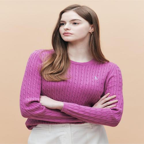 헤지스 여성 면 라운드넥 케이블 긴팔 풀오버 바이올렛 (HSSW5AC17V2)