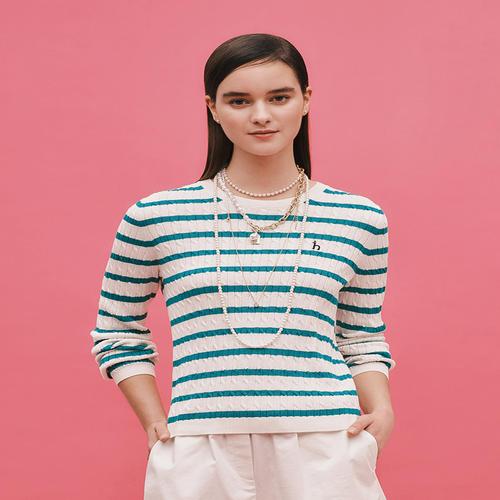 헤지스 여성 멀티 스트라이프 린넨 혼방 칠부 풀오버 블루 (HSSW5B201B1)