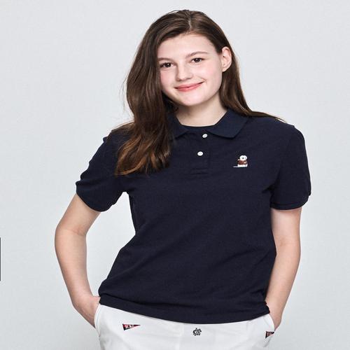 헤지스 여성 해피퍼피 도네이션 자수 반소매피케 티셔츠 네이비 (HSTS5B472N2)