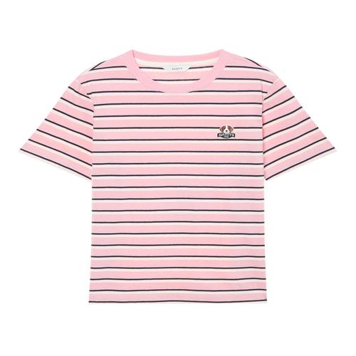 헤지스 여성 스트라이프 릴랙스핏 반소매티셔츠 라이트핑크 (HSTS5BC26P1)
