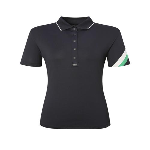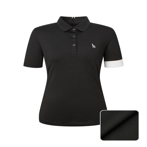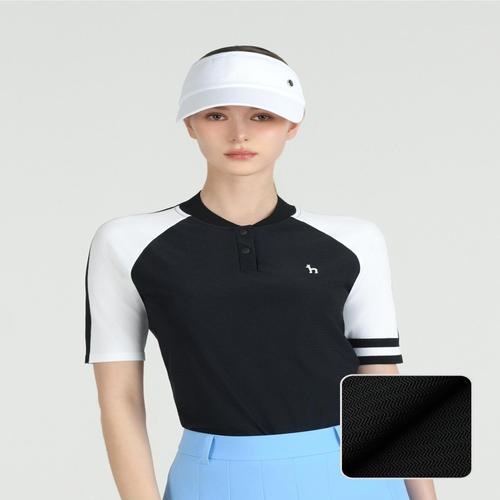 헤지스 골프 여성 블랙 여성 컬러 블록 반팔 카라 티셔츠 (HWTS5B414BK)