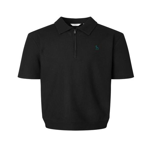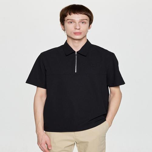 헤지스 남성 블랙 단색 반집업반팔티셔츠 (HZTS5F403BK)