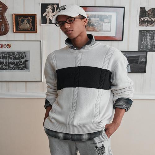 헤지스 남성 [로잉클럽] 컬러블럭 로잉 엠브로이드 스웨터 (HZSW4D053CR)