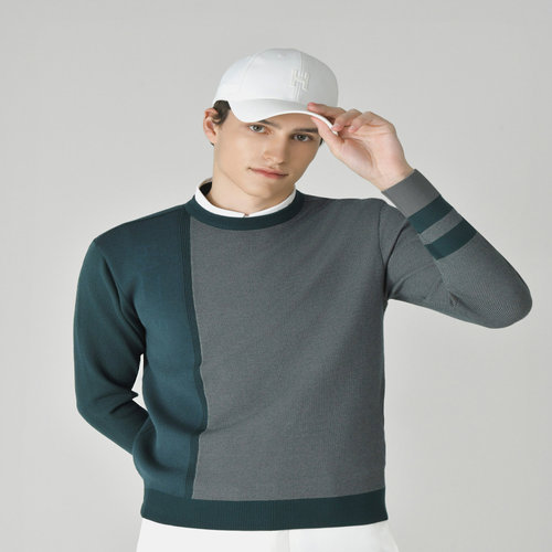 헤지스 골프 [ONLINE EXCLUSIVE]그린 남성 컬러 블록 로고 짜임 니트 (HUSW5C901E2)