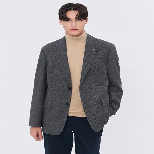 헤지스 남성 차콜그레이 패턴 울혼방 하프코트 (WHJA4D404CG)