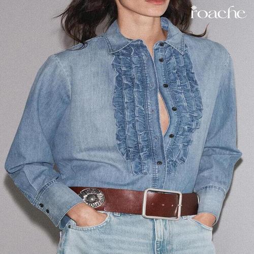 [헬렌]로아체 데님 여성 셔츠 청 남방 레이스 프릴 봄 가을