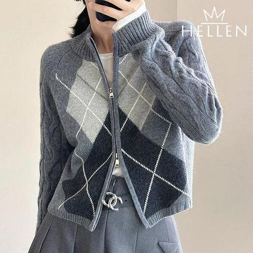 [헬렌]헬렌 아가일 패턴 여성 니트 투웨이 집업 래글런 가디