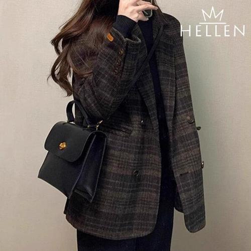 [헬렌]헬렌 겨울 자켓 숏 코트 체크 도톰 하객룩 돌체울라이