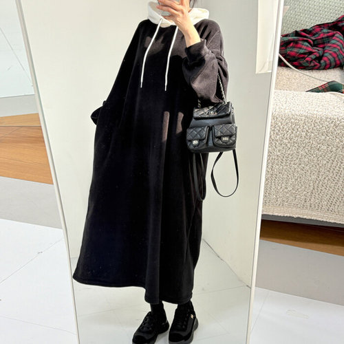 나야홍 / 빅사이즈 512 포근한기모후드원피스 DRAV898