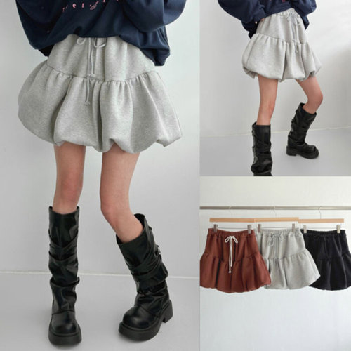 여자 티어드 귀여운 고무줄 호박 미니스커트