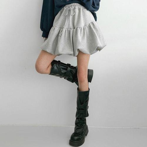 플러리싱 / 캐주얼 호박 벌룬핏 셔링 미니 스커트 플러리싱