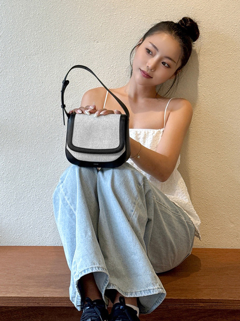 [호재] 가죽 캔버스 미니백 퍼프_2컬러