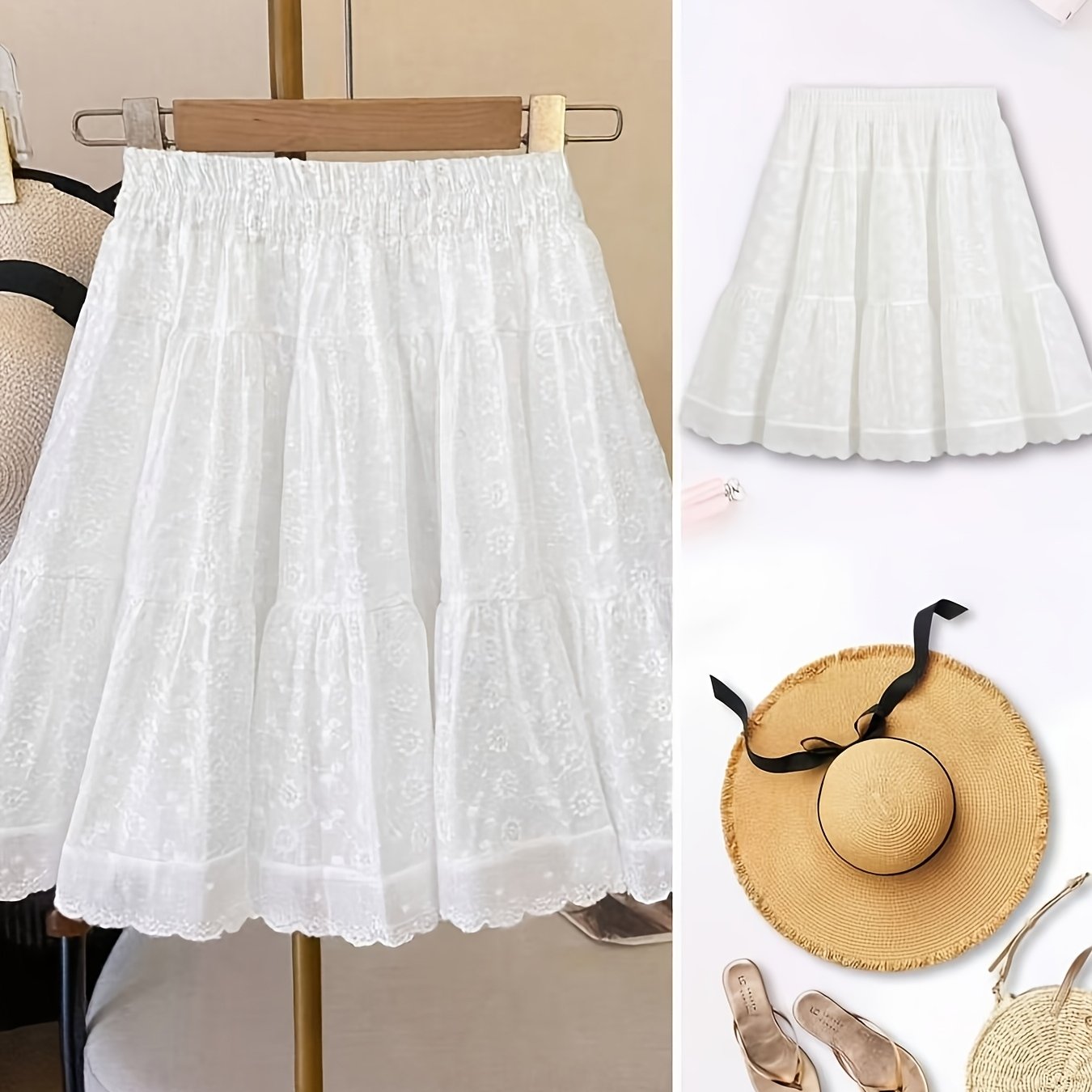TEMU 여성용 플리츠 레이스 스커트 | 캐주얼 로우 웨이스트 루즈 A라인 스커트, 러플 트림 및 안감, 해변 휴가 및 스트리트 스타일에 완벽