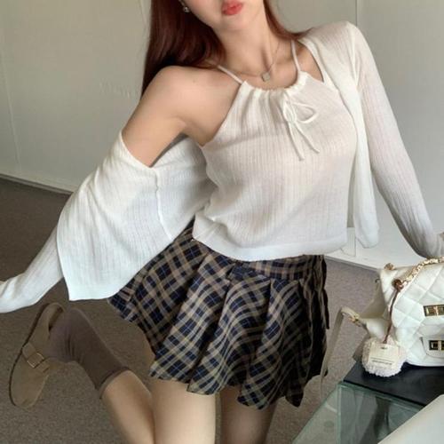 |KCD288A|여성용 봄가을 레이어드 홀터넥 니트 세트