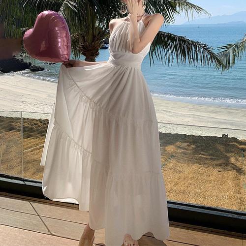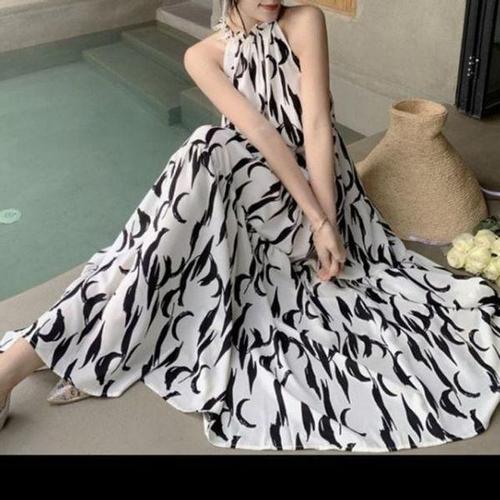 [다잇템]여자 백리스 홀터네크 롱 바캉스룩 원피스